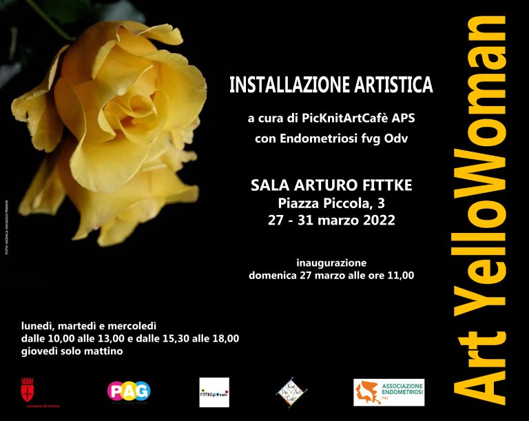 E’ stata appena inaugurata la mostra Art YelloWoman, realizzata e coordinata dall’associazione Pic Knit Art Cafè APS di Trieste in partnership con l’Associazione EndometriosiFVG Odv. Si tratta di un’installazione artistica immersiva realizzata con centinaia di rose gialle, volta ad informare, sensibilizzare e far conoscere ad un pubblico giovane l’endometriosi, malattia femminile che colpisce una donna su dieci in età fertile. L’appuntamento si inserisce nel calendario di FITTKEgiovani promosso dall’Assessorato ai Giovani e curato dal PAG Progetto Area Giovani del Comune di Trieste.