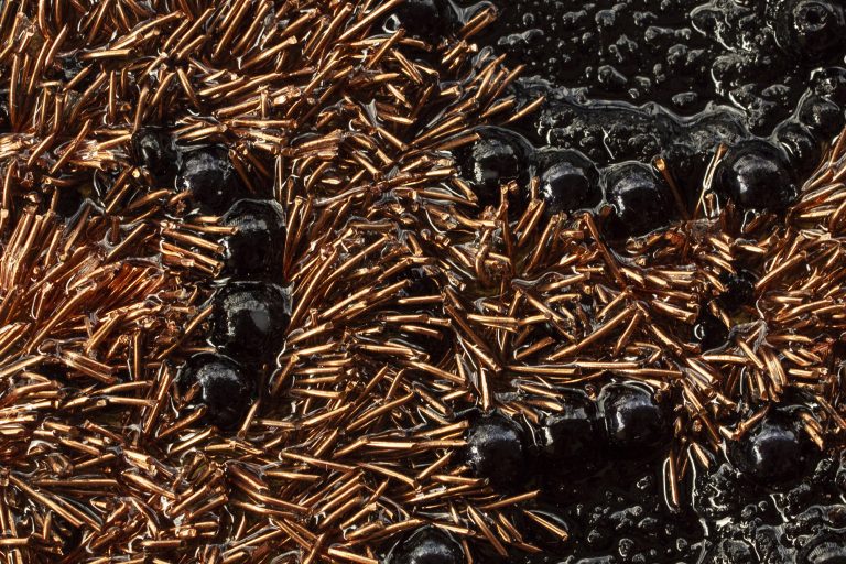Ylenia Deriu, in particolare, si è focalizzata sulla rappresentazione delle elitre, stravolgendone la scala, e ha reinterpretato le micro strutture che caratterizzano ciascun insetto per renderle visibili ad occhio nudo, trasformandole in ornamenti per il corpo. Ha realizzato quindi una serie di quindici spille in cui le diverse strutture sono state imitate attraverso un’ampia sperimentazione di tecniche di lavorazione e di materiali, spaziando dall’ottone al carbone, dal gesso all’oro, dalle perline di vetro alle pietre dure, dal Corian al filo di nylon, dalla resina al rame. L’eterogeneità dei materiali e la complessità delle strutture sono state racchiuse ed esaltate nella sintesi data alla forma di ciascun oggetto.