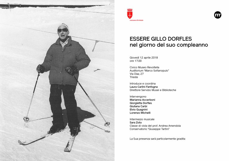 Per ricordare il 108° compleanno di Gillo Dorfles, a poco più di un mese dalla sua scomparsa, avrà luogo giovedì 12 aprile, dalle 17 alle 19, al Museo Revoltella di via Diaz 27, a Trieste, città, dove era nato il 12 aprile del 1910, un ricordo a più voci intitolato “Essere Gillo Dorfles”.“Un’iniziativa promossa dal Comune di Trieste – Servizio Musei e Biblioteche” – precisa la direttrice Laura Carlini Fanfogna-. “Intendiamo celebrare la figura di Dorfles in quanto uno dei più significativi intellettuali triestini, ma di livello internazionale, a maggior ragione visto che il Museo nel 2007 gli aveva dedicato un’esposizione monografica per dar conto della sua attività di pittore e intellettuale. Lo spirito è quello di una celebrazione di carattere informale, non accademica e sarà accompagnata da un intermezzo musicale”.
