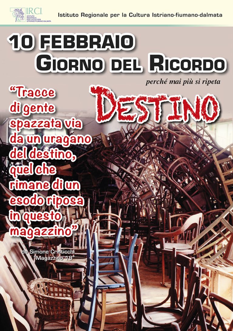 Si segnala che sono già aperte le prenotazioni per le visite guidate e gratuite in occasione dell’apertura straordinaria del Magazzino 18 per le giornate dell’11, 12 e 15, 16 febbraio con obbligatoria prenotazione all’IRCI fornendo per tempo i dati personali per il permesso di accesso (tel. 040639188, e-mail: irci@iol.it), con due turni di visita giornalieri alle ore 10.00 e alle 11.30 per un massimo di 20 persone a turno che devono essere dotate di mezzo proprio per l’entrata nel porto di Trieste. Per la conferma della prenotazione si prega di lasciare un recapito telefonico per poter venir ricontattati. Naturalmente, si ricorda che le visite si terranno nel rispetto delle norme sanitarie vigenti.