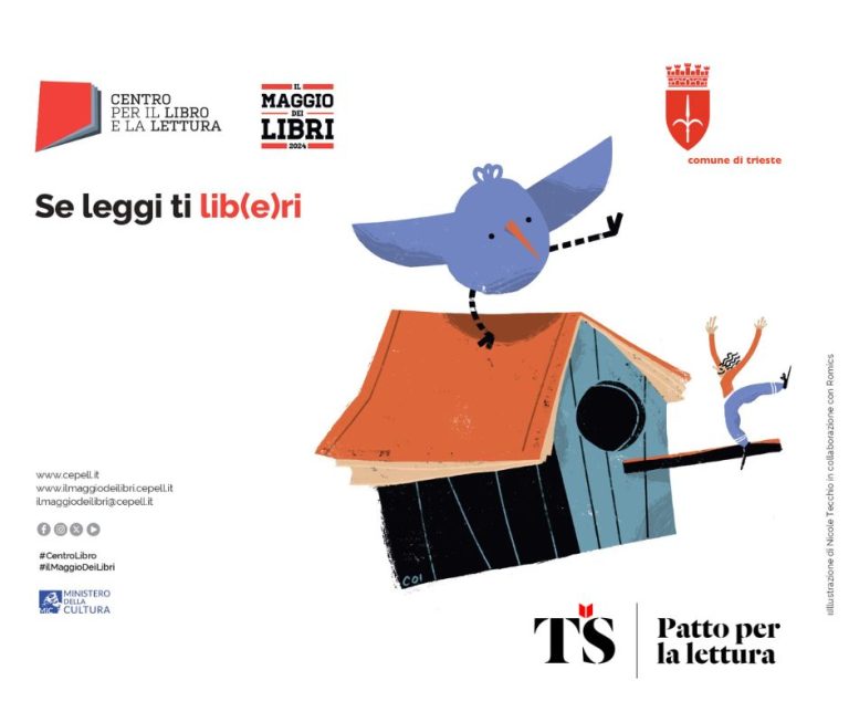 Se leggi ti lib(e)ri! è il tema scelto per la 14a edizione de Il Maggio dei Libri, la campagna del Cepell – Centro per il Libro e la Lettura. Un vero e proprio inno alla libertà, quella più piena, che solo la lettura può dare. Le iniziative proposte dalle biblioteche del Comune di Trieste sono liberamente ispirate ai tre filoni tematici suggeriti dall’edizione 2024: Lib(e)ri di conoscere, dedicato al mondo dell’informazione, alla saggistica e alla narrativa storica; Lib(e)ri di sognare, dove troviamo la grande narrativa, specialmente fantastica, e le più avvincenti biografie; Lib(e)ri di creare, per dar voce alla poesia e a tutto il suo potenziale immaginifico. Tre differenti modi di approcciarsi alla lettura. Tutti gli appuntamenti sono gratuiti e rientrano nel programma “Verso il Congresso internazionale IBBY Trieste, 30 agosto – 1 settembre 2024.
