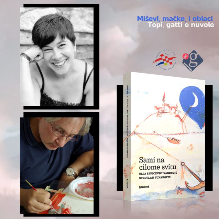 Mercoledì 19 aprile (ore 17.00 alla biblioteca comunale Quarantotti Gambini in via delle Lodole 7/a) per la rassegna Miševi, mačke, i oblaci | Topi, gatti e nuvole dedicata alla letteratura croata illustrata per l’infanzia saranno protagonisti Ivan e Luiđa, unici abitanti di due isole solitarie, i protagonisti di Sami na cilome svitu (Soli al mondo edizioni Sandorf, 2020) lo splendido album illustrato dal pittore e disegnatore zagrebino Svjetlan Junaković per il racconto di Olja Savičević Ivančević, giovane scrittrice e poetessa spalatina tradotta in Italia da L’Asino d’oro (Addio cowboy 2017; Il cantante nella notte, 2018) ed autrice di numerosi testi – anche teatrali – per ragazzi.
