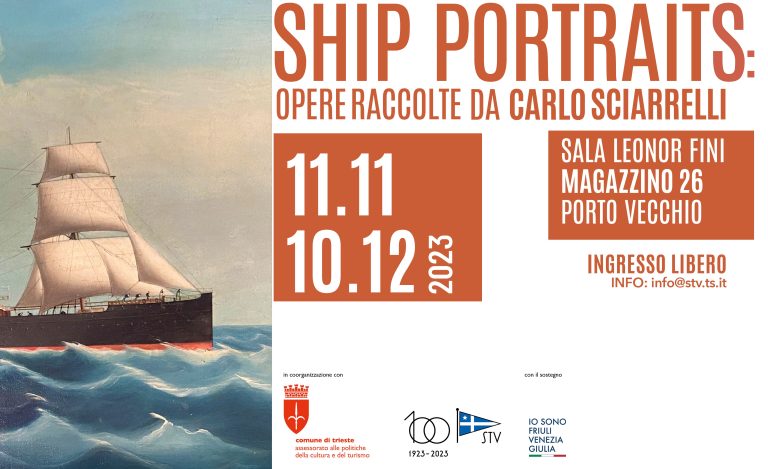 La mostra “Ship Portraits, opere raccolte da Carlo Sciarrelli” realizzata dalla Triestina della Vela in coorganizzazione con il Comune di Trieste, Assessorato alle Politiche della Cultura e del Turismo, in occasione del centenario del Circolo fondato il 20 marzo del 1923 è stata inaugurata oggi (venerdì 10 novembre) presso la Sala Fini del Magazzino 26 del Porto Vecchio di Trieste (ora Porto Vivo). Il taglio del nastro è avvenuto da parte dell’Assessore Giorgio Rossi, alla presenza della Presidente della Triestina della Vela, Marina Simoni e dell’Assessore regionale alle Autonomie Locali, Pierpaolo Roberti, presente anche in veste di socio della Triestina della Vela, che ha portato i saluti del Presidente della Regione FVG, Massimiliano Fedriga.