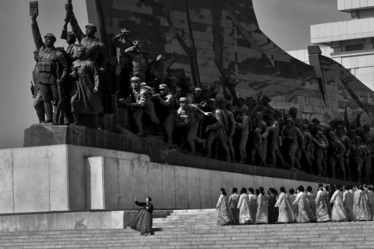 Lo sguardo di Alain Schroeder si posa su questa regione dell’Asia attraverso tre storie, suddivise nelle due sale dell’allestimento: la prima è dedicata alla Corea del Nord, uno degli stati più secretati al mondo. Si tratta di una preziosa documentazione fotografica che però, come sottolinea egli stesso, non restituisce fedelmente il paese ma è condizionata dai meccanismi manipolatori dell’informazione di regime, visto che il servizio è stato effettuato sotto il rigido controllo censorio di due guide ufficiali che hanno indicato cosa guardare e cosa fotografare: ecco perché “This is not Korea”, sebbene il servizio, seguendo gli stilemi comunicativi del regime, abbia il merito di restituirci la prodigiosa macchina organizzativa creata per la costruzione del consenso che, in questo caso, è per una volta desideroso di travalicare i confini nazionali.