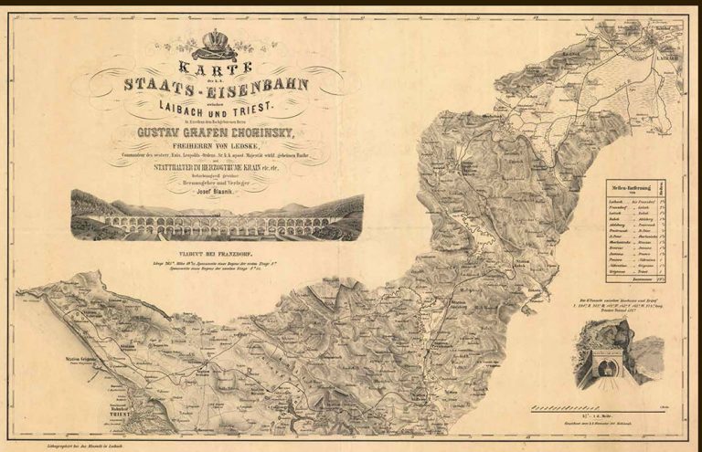 Il completamento del grande asse ferroviario di 577 km tra Vienna e Trieste (attraverso il Semmering, la Stiria, la Slovenia e il Carso) fu un primato allora mondiale, – la prima ferrovia ad attraversare una catena montuosa (Alpi Noriche) con il passo del Semmering (898 mslm). Una sfida pionieristica condotta principalmente grazie al genio dell’ingegnere veneziano Carlo Ghega.