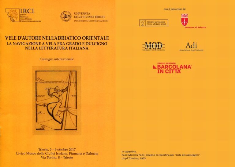 L’evento appare propizio per trattare un argomento che coniuga la navigazione a vela con la letteratura italiana. Perciò nei giorni 5-6 ottobre 2017 a Trieste si celebrerà il congresso internazionale Vele d’autore nell’Adriatico orientale. La navigazione a vela fra Grado e Dulcigno nella letteratura italiana.