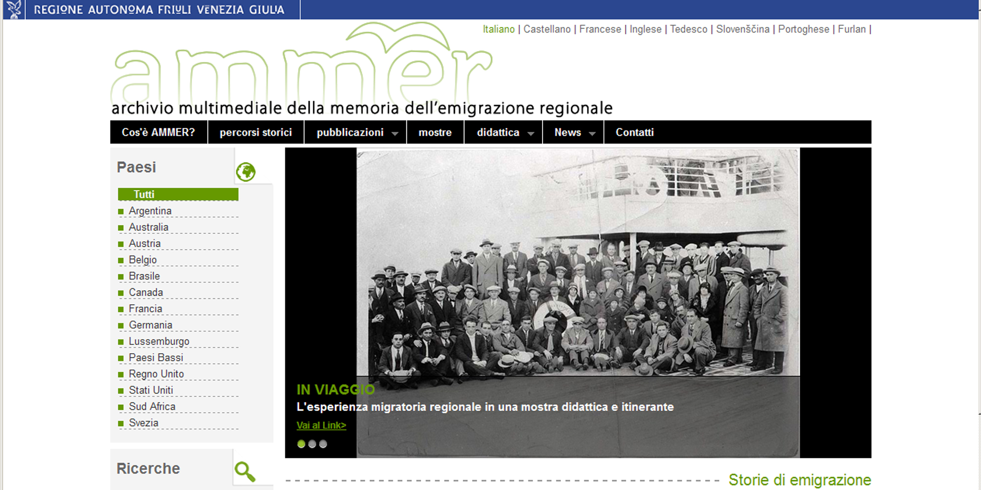 L’AMMER – Archivio Multimediale della Memoria dell’Emigrazione Regionale è un archivio digitale che raccoglie fotografie, documenti cartacei e interviste registrate ai protagonisti dell’emigrazione del Friuli Venezia Giulia. Si è inaugurato nel 2006 con una serie di 100 interviste e 5000 fotografie raccolte in Argentina e Uruguay. Nel corso degli anni la ricerca è stata estesa progressivamente a tutti i Paesi verso i quali si sono diretti i flussi migratori dalla Regione.