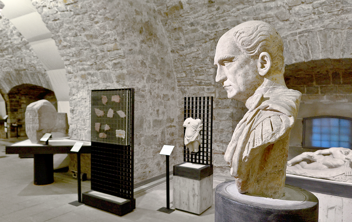 Allestito all’interno del cinquecentesco Bastione Lalio del Castello di San Giusto, il Lapidario Tergestino espone, attraverso 130 tra iscrizioni e sculture, la storia di Tergeste romana con i monumenti dell’area capitolina, gli edifici sacri, il Teatro e le necropoli. L’ultima sala è dedicata ai mosaici provenienti dalla lussuosa villa marittima di Barcola, databili tra la fine del I secolo a.C. e la metà del I secolo d.C.