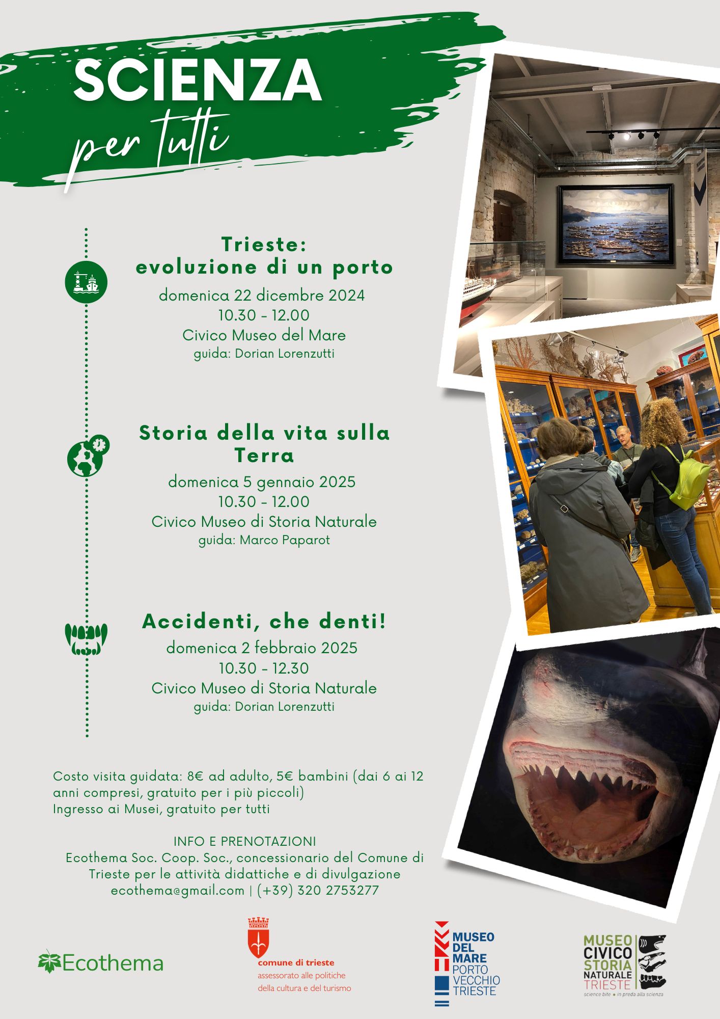 Museo di Storia Naturale Via dei Tominz, 4Ecothema, concessionaria dei servizi didattici e attività di divulgazione dei Civici Musei Scientifici di Trieste, presenta Scienza per tutti, un ciclo di tre eventi che avranno luogo nei mesi di dicembre 2024, gennaio e febbraio 2025 dedicati alla conoscenza di alcune delle eccellenze scientifiche e culturali della città giuliana e pensati per coinvolgere pubblici di […]
