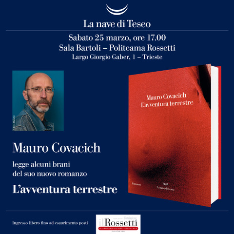Politeama Rossetti viale XX Settembre, Trieste, Trieste, Italy“Reading da “L’avventura terrestre”: sabato 25 marzo alle ore 17 alla Sala Bartoli Mauro Covacich leggerà alcuni brani di forte intensità emotiva e con sprazzi di inaspettata comicità - dal suo ultimo romanzo. L’ingresso è libero fino ad esaurimento dei posti disponibili”. Dopo i due monologhi dedicati a Svevo e Joyce, che lo hanno portato […]