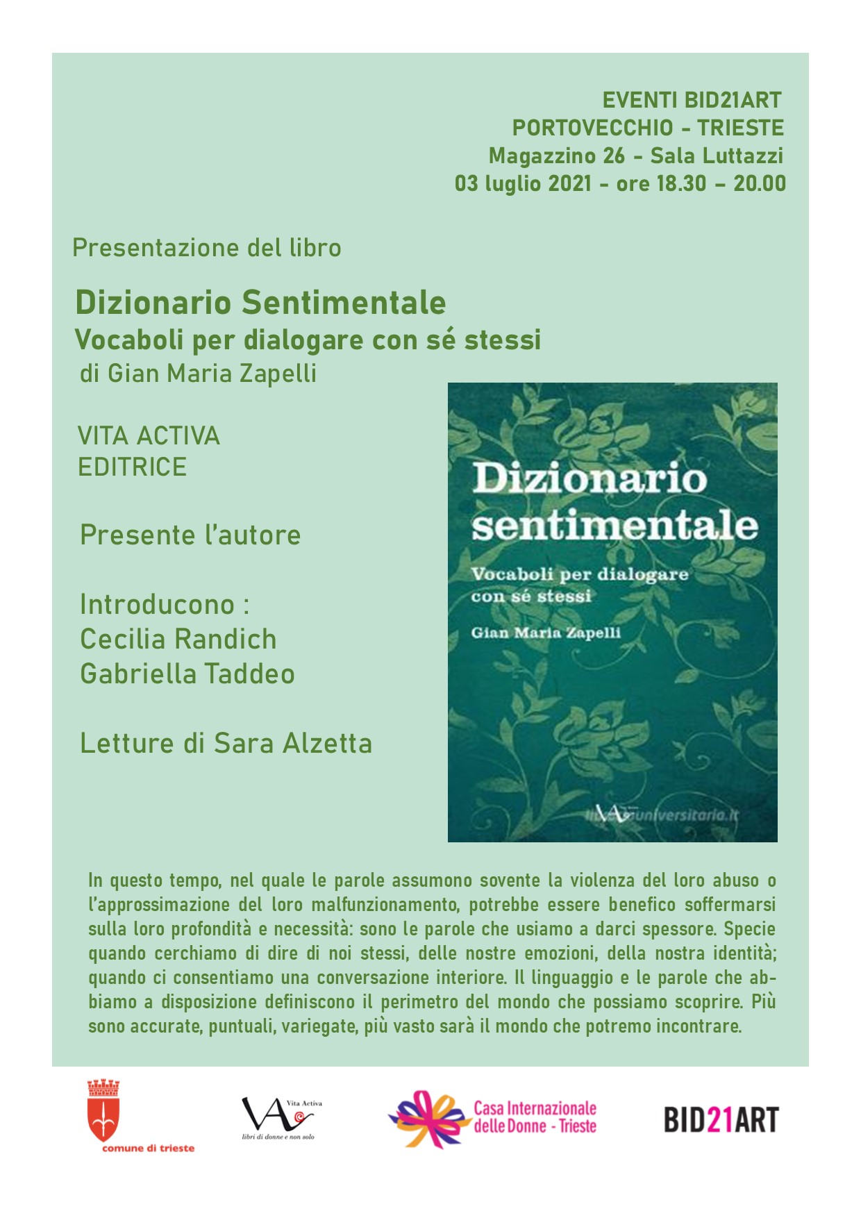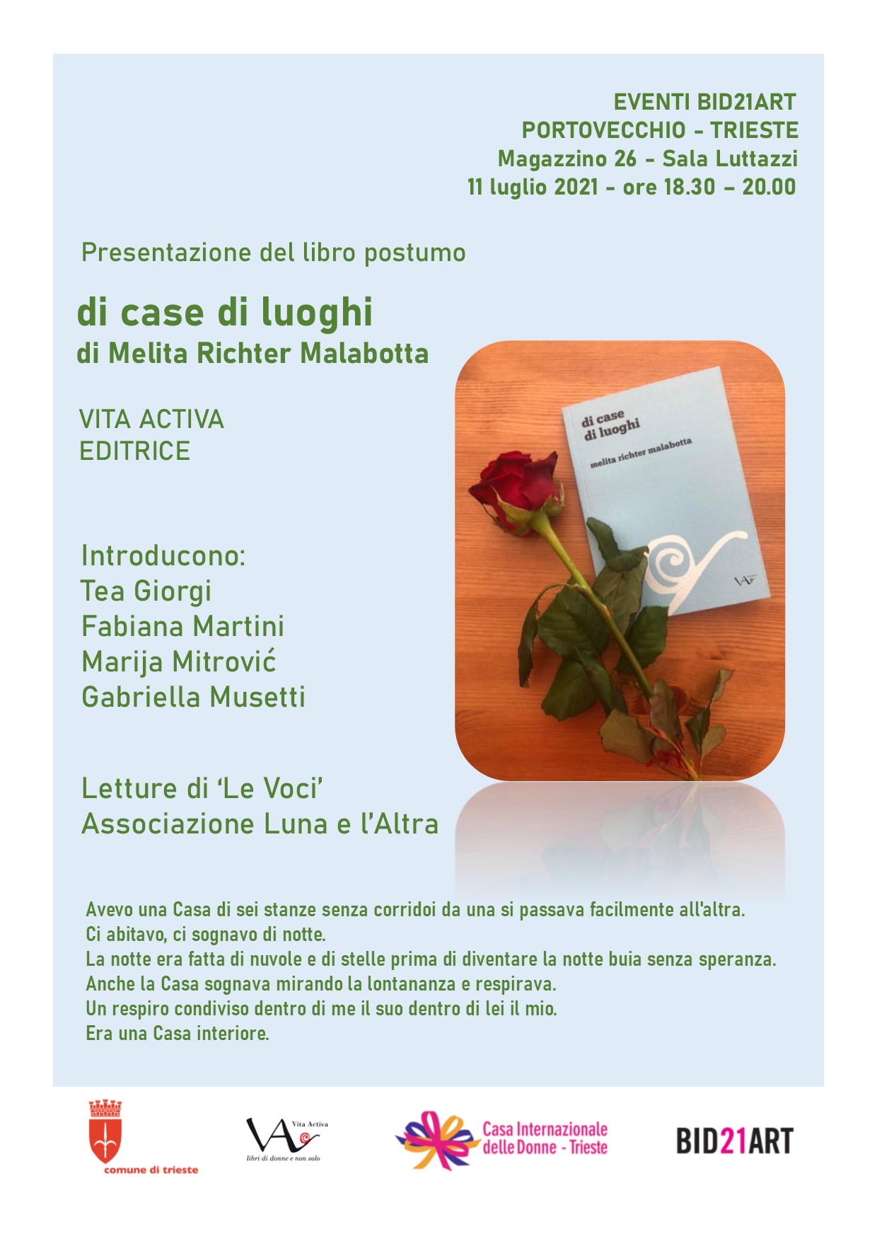 Sala Lelio Luttazzi Magazzino 26 - Porto Vecchio, Trieste, TS, ItalyÈ uscito a fine 2020, per le edizioni Vita Activa di Trieste, un nuovo lavoro di Laura Ricci. Poeta, narratrice e traduttrice, con la sua scrittura ha affrontato nel tempo vari generi letterari, e ora regala a lettrici e lettori una nuova, attuale traduzione dei Sonnets from the Portuguese, il celebre canzoniere d’amore della poetessa […]