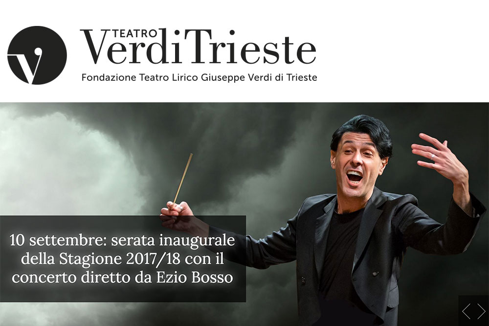 Teatro Lirico Giuseppe Verdi Riva Tre NovembreLa serata inaugurale della nuova Stagione del Teatro Lirico Giuseppe Verdi di Trieste è affidata al carismatico Ezio Bosso nella triplice veste di di direttore, pianista e compositore, proporrà un programma di musiche proprie abbinate a pagine di Beethoven. . Domenica 10 settembre alle ore 20.30 - Teatro Lirico Giuseppe Verdi di Trieste Il programma della serata prevede […]
